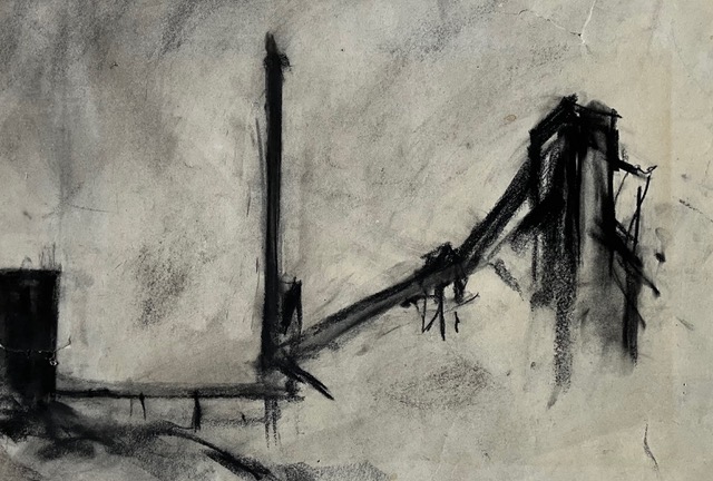 At first, the only sign of human life I saw was an arm sticking out of the cab of one of the moving contraptions, or the silhouette of a head near fire or steam. But during my constant nightly visits, I gradually got to know the owners of these arms and heads, and they kindly allowed me to join them in the cabins of the various machines they operated. I was invited into the cab of a gantry crane hovering over an entire coal field, and—most interestingly—into the small engine that pushed a “hot car” full of burning coke down the dowser. The workers didn’t ask many questions and referred to me, pleasantly, as a “Russian spy” who was stealing American technological secrets through his sketchy drawings. In the second year of my acquaintance with the coke plant, I began to look at the dates JULY 7 written in white chalk on many black steel walls. I learned that this was the coke factory’s last day of operation. The year was 1968. New Haven had brought in a natural gas pipeline from Texas that replaced the gas supplied to the city as a byproduct of burning coke. The coke factory will close.